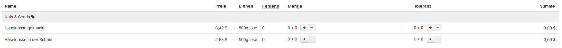 Manche LieferantInnen liefern keine einzelnen Packungen, sondern nur ganze Gebinde an, die wir aber unter uns aufteilen können. Ähnlich ist es bei Waren, die lose in einer Großpackung bestellt werden, aus der sich dann jede Bestellgruppe ihre bestellte Menge herausschöpft. Durch die Bestellungen der Bestellgruppe wird die Gebindegröße wahrscheinlich nicht genau erreicht. Beispiel: 28 Packungen wurden bestellt, es gibt 10 Packungen je Gebinde – daher werden nur 2 Gebinde, also 20 Packungen bestellt und viele Bestellgruppen gehen leer aus. Wenn sich aber jemand bereit erklärt hätte, in so einem Fall 2 Packungen zusätzlich zu nehmen, könnten 30 (also 3 Gebinde) bestellt werden. Das man mit der Toleranz angeben: Wie viele Einheiten würde man zusätzlich maximal nehmen, damit die Anzahl aufgeht?